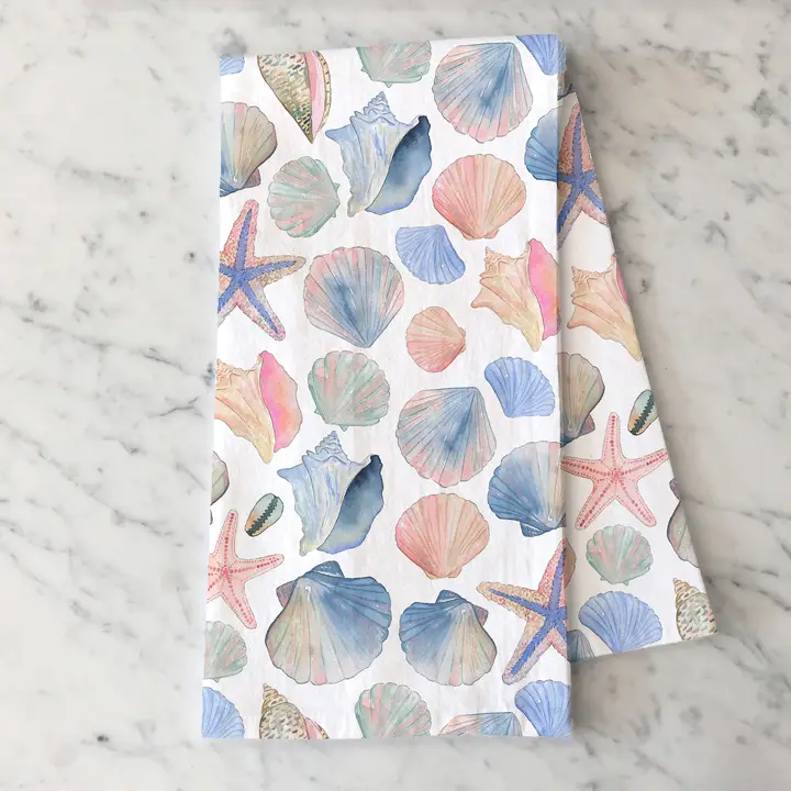 Bring natural beauty into your kitchen with our Seashell Tea Towel. Soft watercolor shells in ocean-inspired tones make this artisan cotton towel a timeless coastal accent. Strong, absorbent, and designed for everyday use - or for gifting to a beach lover.