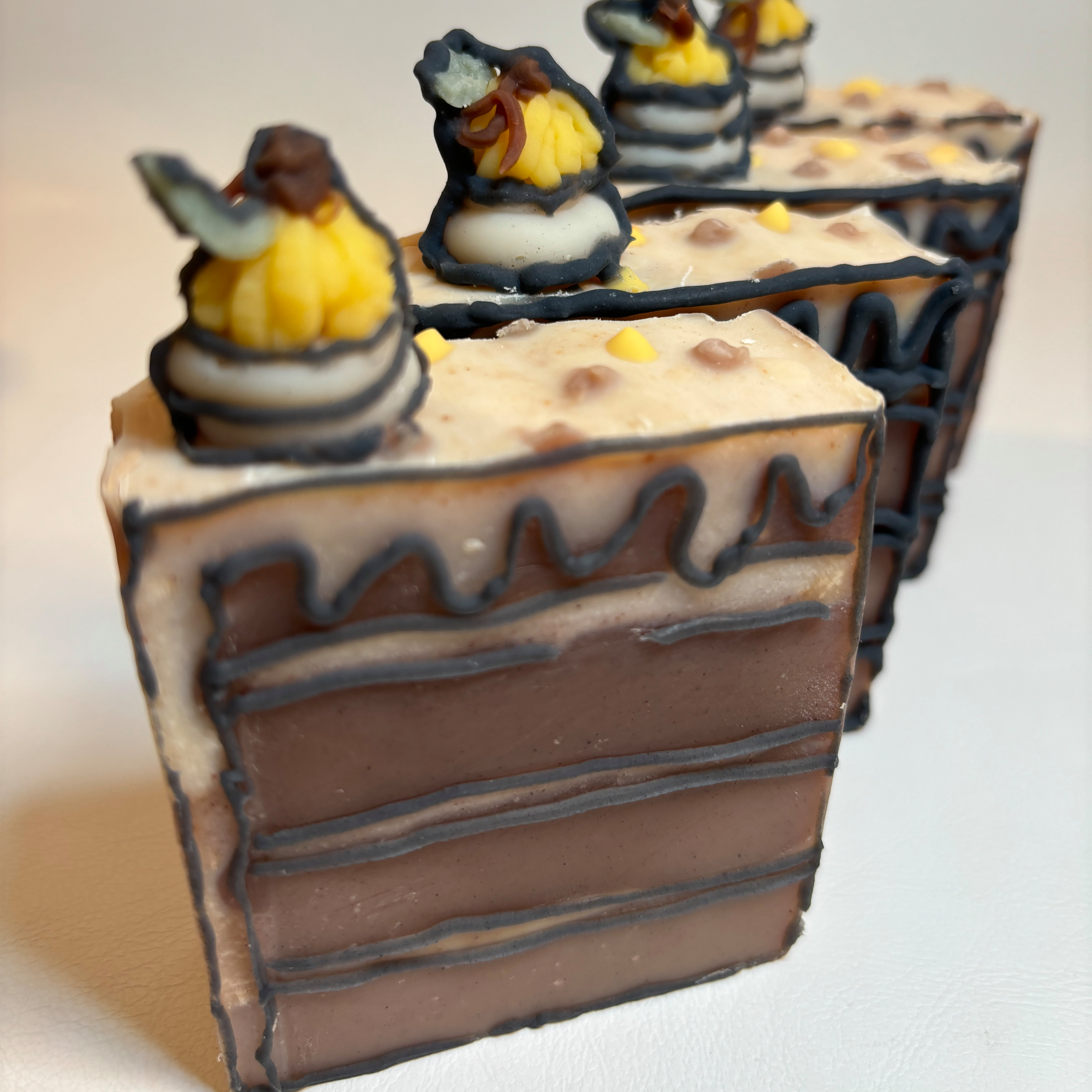 Cozy up to fall with our Pumpkin Spice Cake Soap. Designed with layers that mimic a seasonal cake slice, this artisan bar is as fun to look at as it is to use. Vegan-friendly and eco-conscious, it's a special fall bar you'll want to have in every sink and shower.